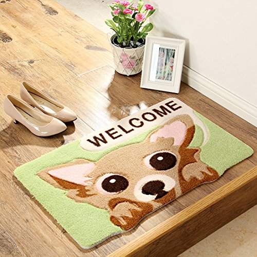 -. Feature : Style: Door Mat / Material: polyester / Color: Blue-Shiba Inu, Green-Chihuahuas, Pink-Poodle / Size: 42*67cm/16.5*26.4" / Cleaning type: Dry, dust and hand wash