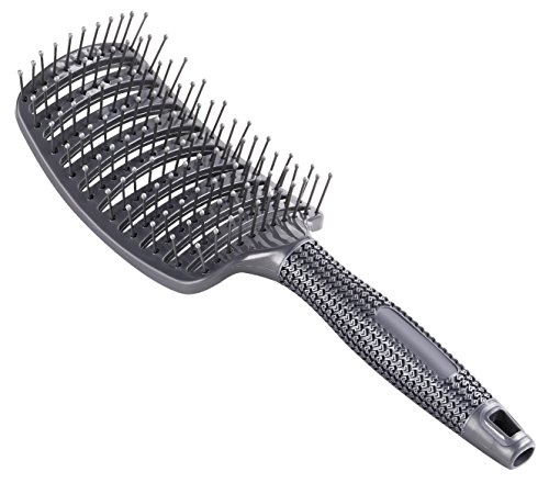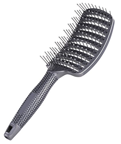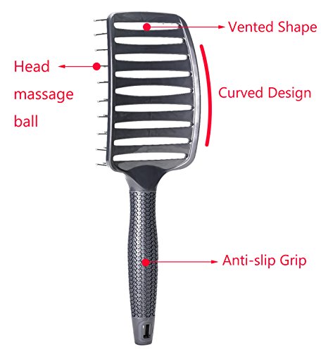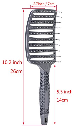 Curved Vent Brush, Barber Blow Drying Brush with Nylon Detangling Pins, Anti-Static - Grey