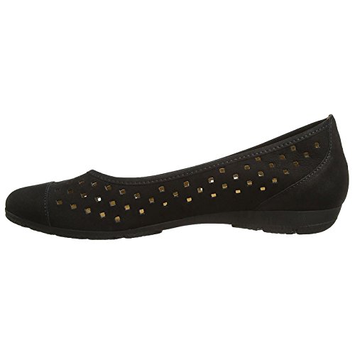 Studio : Gabor Publisher : Gabor Binding : Apparel Product Description The new 84.169.17 ballet flats from Gabor were created for absolute comfort during your busy days. Designed to offer increased breathability, these pumps have been manufactured from perforated soft and rich nubuck upper with reinforced toe and heel areas for extra protection. The lining of these slip-ons is made of moisture-wicking textile and soft leather for a comfortable and abrasion-free wear. The non-removable, perforated and leather lined soft footbed of these ballerinas ensure your feet are well ventilated and cushioned all day long. Finishing these casual flats is the thin and flexible rubber sole with shock-absorbing Hovercraft technology. The integrated air chambers in the sole cushion your every step while the ergonomic design promotes the foot's natural rolling movement and offers pressure relief. 0
