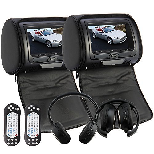 -. Title : Ouku®Black Color Pair of Headrest Pillow 7" LCD Car Monitors with Region Free DVD player USB SD Wireless Dual Channel Headphones and 32 Bit Games and Zipper Cover