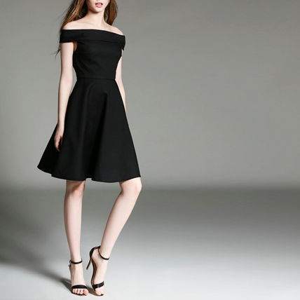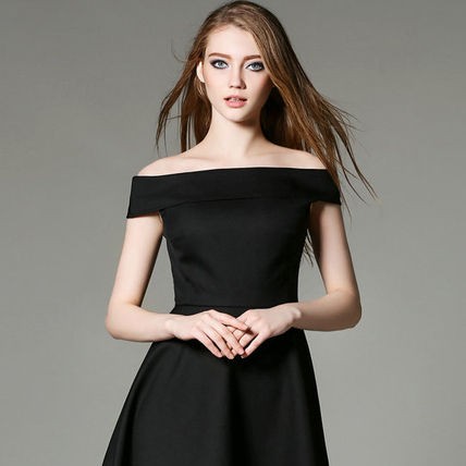 セクシーなオフショルダーのシンプルなひざ丈ワンピースドレス。