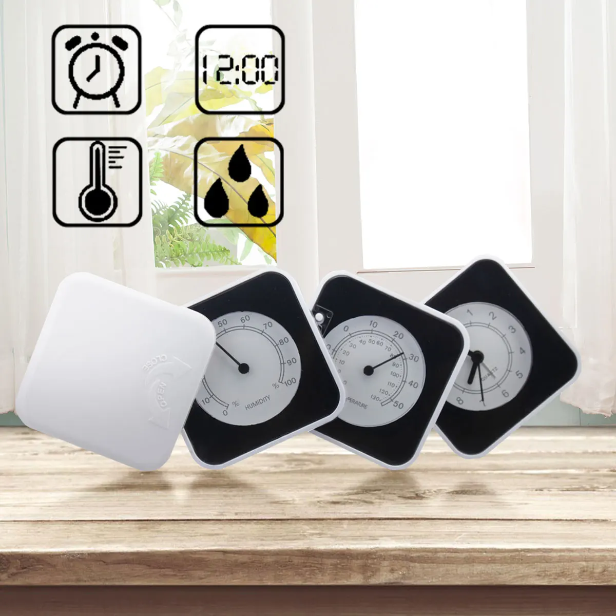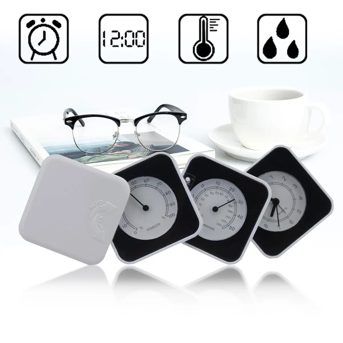 Supply of three tables, temperature and humidity clock, folding bell, temperature and humidity clock, clock, rotating alarm clock.