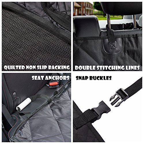 -. Feature : ★ FOURFOLD REINFORCED DESIGN - 1000D Durable Oxford With waterproof stain-block PU coating + Thick soft polytech Fill + 190T Poly Ripstop lining + soft non-slip rubber grip, Mega Pet Car Seat Cover protects your car seat from pet's hair/mud/dust/liquids. / ★ IMPROVED PET SAFETY & COMFORT - Mega Pet Car Seat Cover feature a soft, quilted top for extra cuddly comfort, as well as a non slip bottom design eliminates the risk of dog slipping over during rough rides / ★ HAMMOCK WITH SIDE FLAPS - Mega Pet Car Seat Cover is design with 2 extra side flaps. It's easier for your dog to get in or out of car. The side flaps also protect your car door against claws and drool when you hang it out. / ★ UNIVERSAL DESIGN - This large 58"" X 54"" waterproof dog seat cover fits most cars trucks and SUVs' rear seats, as either a hammock or bench seat cover. Not only for small medium dogs, Perfect for large breeds too. / ★ SEAT ANCHORS & SEAT BELT OPENINGS - With the seat anchors, two velcro seat belt openings, and reinforced headrest straps, it is easy to install and will stay in place!