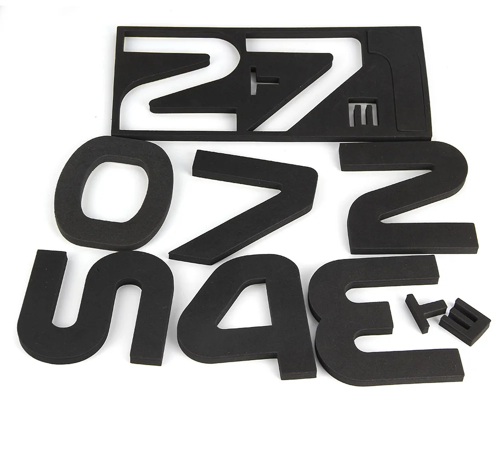 STEP 4 : Tear off the gummed paper of the EVA and the numerals, then stick the EVA to the wall, and stick the numerals on to the EVA, remove the protective film of the numerals.