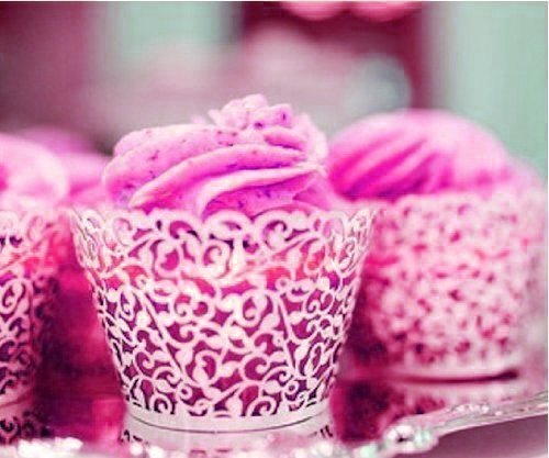 Sorive ® Pack of 100ps Cream Ivory Cupcake Wrappers Filigree Artistic Bake Cake Paper Cups Little Vine Lace Laser Cut Liner Baking Cup Muffin Case Trays for Wedding Party Birthday Decoration SRI0681