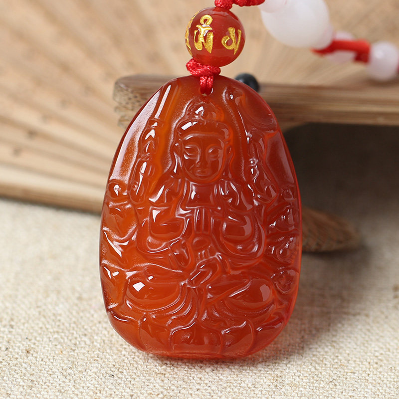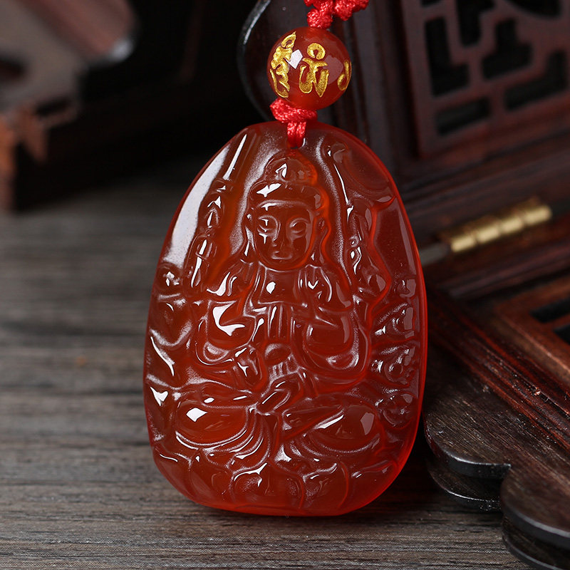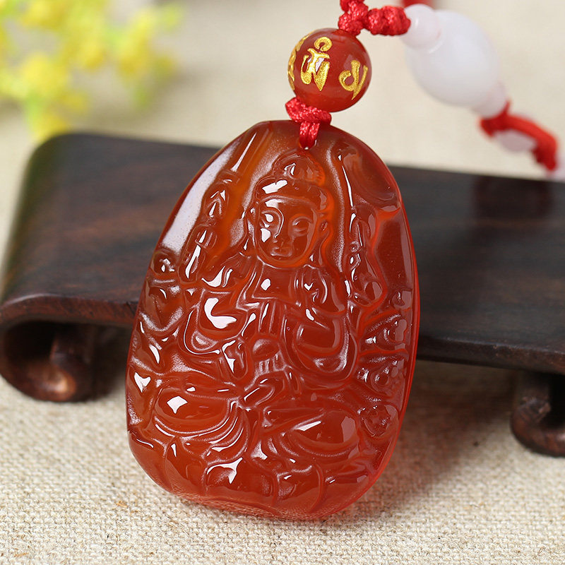 开光天然红玛瑙千手观音菩萨十二生肖鼠本命佛守护神吊坠