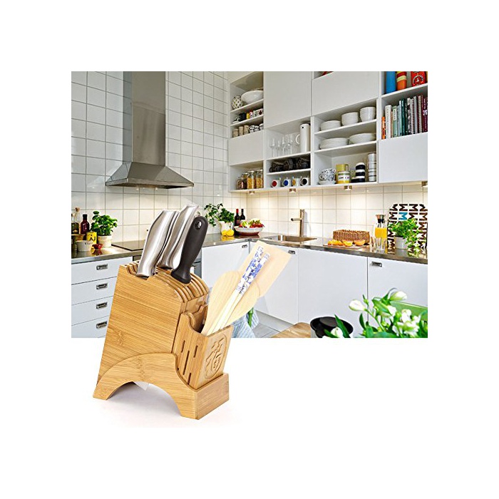Fuloon 부엌칼 스탠드 목제 대나무 수납혈7개+떼내어 가능 케이스1 개항균 다기능 예쁘다 강건 편리