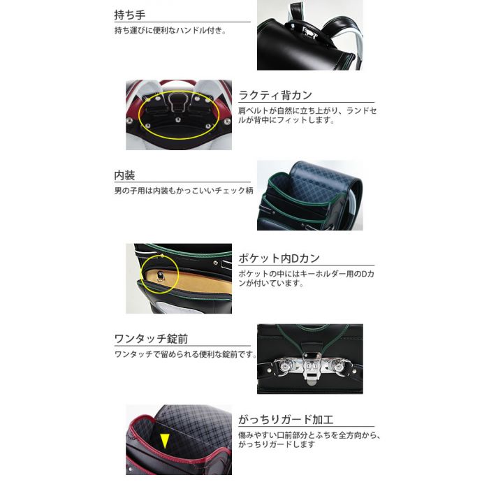 어깨 끈 뒤 소재:컬러 클라리노 중량 약1050g 컬러 블랙×마린 블루,블랙×mossgreen,블랙×그레이,블랙×레드 기능 핸들(손잡이)부착 A4북 파일 수납 ## 것게 되 락 T배 캔 후와(불화) 인 오 숄더 어깨 벨트 좌우D캔부 2단+포켓 마치(깊이,폭) 와이드 포켓 다부지게 가이드 양나스카《》 원터치정 체크 무늬 내장 항균 소취 이너 특징 piping를 세운 멋진 란도세루(초등학생이 어깨에 매는 가방).## 것게 되 락 T배 캔에 등에 피트.양나스카《》사양으로 핸들 부착.외치수W26×D21×H35 A4북 파일이 편안하게 수납.사뿐히 # 시리즈[콤팩트 리미티드 사내 아이] [콤팩트 리미티드 소녀]