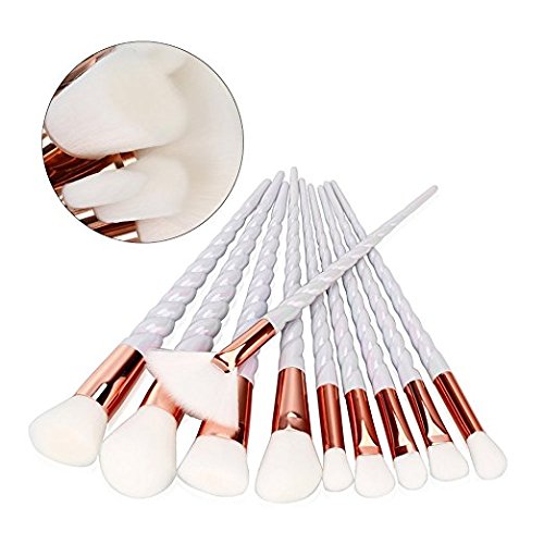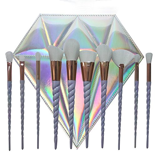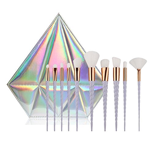 SJZ TECH Unicorn Makeup Brushes Set Fantasy Makeup Tools Foundation Eyeshadow Unicorn Brushes (10 Pcs White Hair with Diamond Pouch)