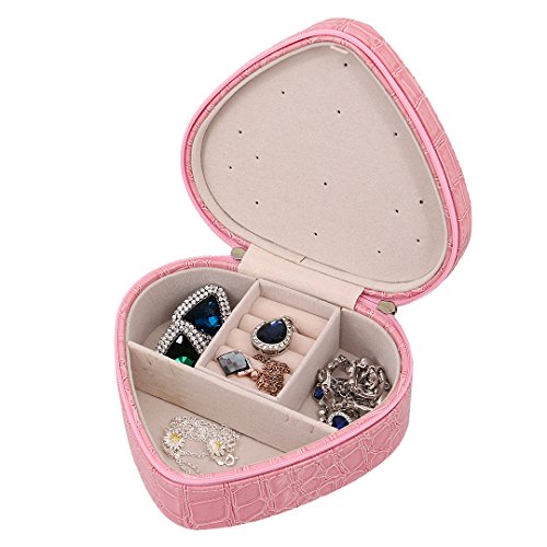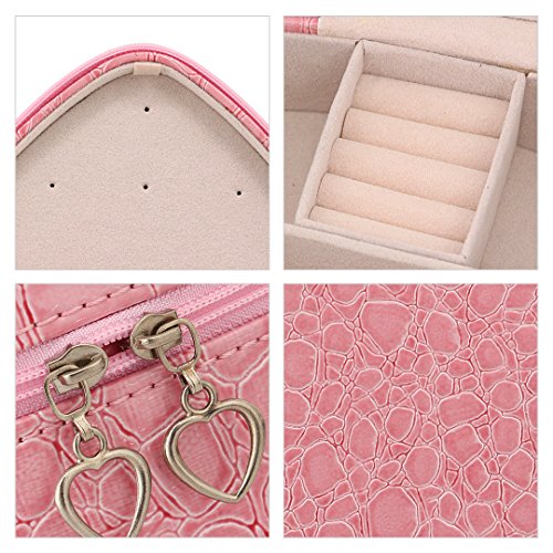 Multifit Heart Shape Jewelry Box Zipper Jewelry Box Small Travel Jewelry Case Display Organizer Holder PU Leather Travel Case Storage Box(Pink)