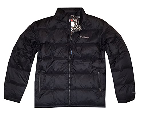 -. Binding : Apparel -. Brand : Columbia -. Color : Black -. Department : mens -. Feature : Shell:100%nylon. Lining: 100% polyester. / Down and feathers: 80% duck down, 20% duck feather. / Omni-HeatTM double thermal reflective lining. / Zippered hand pockets / Water resistant fabric. -. Model : 1719591 -. ProductGroup : Apparel -. ProductTypeName : OUTERWEAR -. Title : Columbia Men Big Bend Omni-Heat Double Thermal Reflective Down Jacket