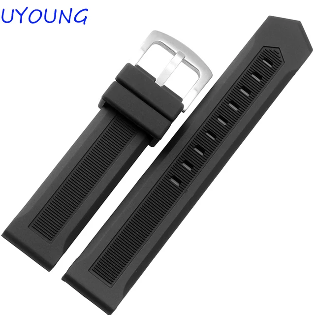도매 20mm22mm 새로운 핫 블랙 실리콘 손목 시계 품질 고무 스트랩 방수 시계 액세서리