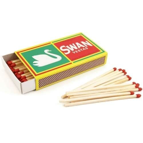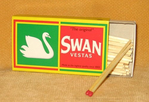 Studio : Swan Publisher : Swan Binding : Health and Beauty Product Description 3 Packs of Swan Vestas Match Boxes, 45 count in each, 3.75" long. A favorite of cigar enthusiasts and pipe smokers (and campers!) - these wood cigar matches have a sulfur-free head. These are also well sought out for media productions such as operas due to the sulfur-free strike. 0