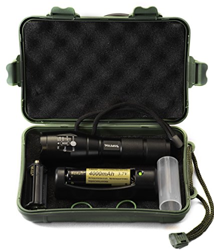 Super Bright 1000 Lumen LED Tactical Flashlight - Water Resistant Seal for Indoor & Outdoor All Weather Use - Military Aluminum Design, Rechargeable Battery & Charger, Zoom Lens - Voldage XB-1000