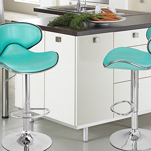 -. Title : Joveco 360 Degree Swivel Adjustable height, stitched Modern design seat Barstools - Set of 2 (Aqua Blue)