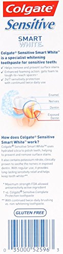 -. Title : Colgate Sensitive Smart White Toothpaste - Specialist Whitening For Sensitive Teeth - Fresh Mint Flavor - Net Wt. 4 OZ (113 g) Per Tube - Pack of 3