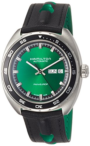 ブランド:HAMILTON(ハミルトン) 型番:H35415761 ケースの形状:ラウンドフェイス 風防素材:サファイアガラス 表示タイプ:アナログ表示 ケース素材:ステンレス ケース直径・幅:42 mm ケース厚:1.185 mm バンド素材・タイプ:ベルトタイプ バンド幅:21 mm バンドカラー:ブラック 文字盤カラー:グリーン カレンダー機能:なし 本体重量:77 g ムーブメント:自動巻き 商品パッケージの寸法: 12 x 12 x 12 cm 発送重量: 1.4 Kg メーカー型番: H35415761