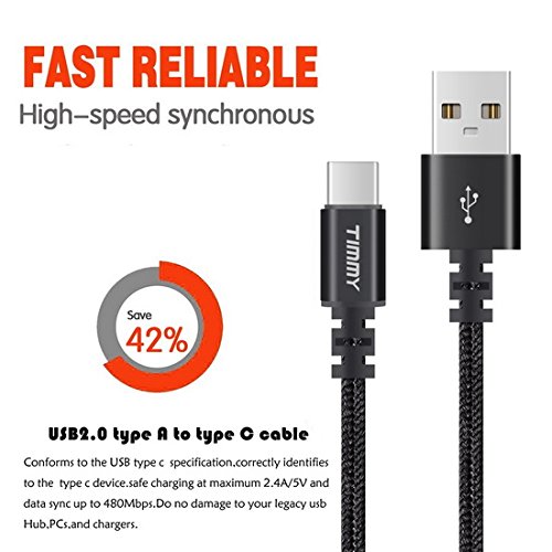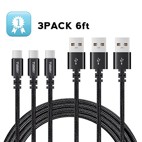 USB Type C Cable,TIMMY 3Pack 6FT USB C to USB A 2.0 Nylon Braided Charging Cable for Samsung Galaxy S8 Plus,LG G6 G5 V20,Nexus 5X 6P,MacBook,Google Pixel,and more (Black)