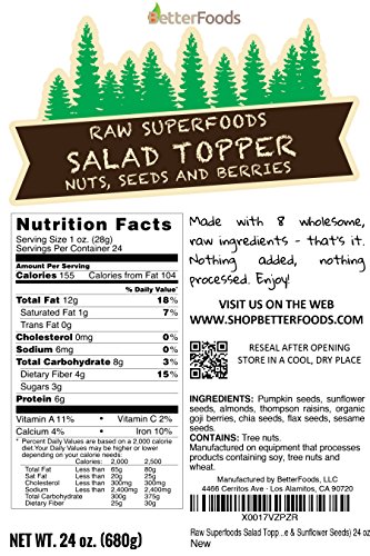 -. Title : Raw Superfoods Salad Toppings Mix (Organic Goji Berries, Raisins, Almonds, Chia, Flax, Pumpkin, Sesame and Sunflower Seeds)