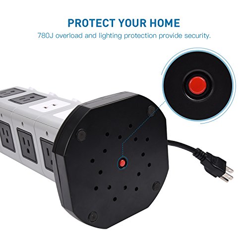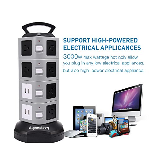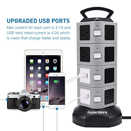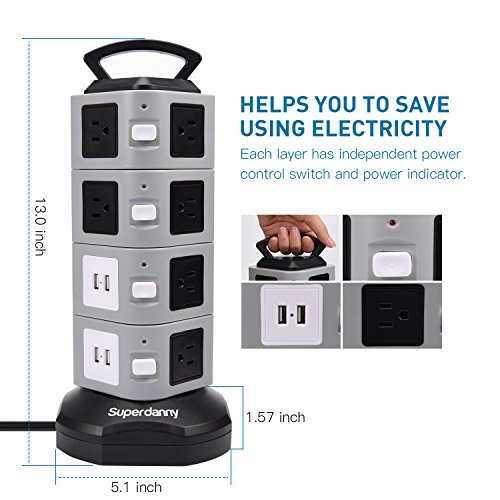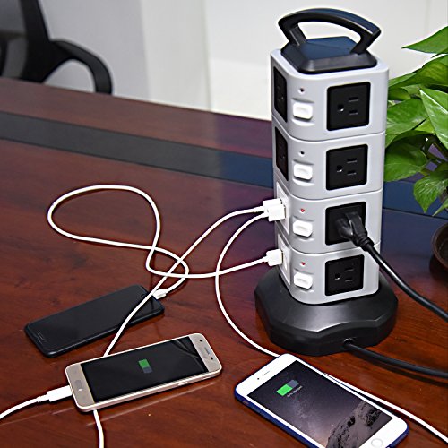 Why Choose our power strip? 1. Total rated current of USB ports is 4.2A for mobile phones, cameras and other digital devices that charges 5 V? 2. Using silver plated switch contacts will strengthen conductivity of the switch.? 3. With surge protection that prevent the electrical appliance from lightning strike.? 4. Built in overload protection that keeps the electrical appliance safe your life is secured.? 5. High quality copper conductor to ensure smooth conduction, high resilience heat resistant.? 6. One control button in every floor, bright light led indicator, low carbon, energy saving easy to use at night.? 7. Strong handle design which gives convenient when moving in another place and eliminate the risk of electric shock hazard.? 8. Environmental protection with high temperature resistance abs material, fire-resistant, moisture resistant and resist impact capability.? ATTENTION:? YOU MAY NEED TO ADD SOME STRENGTH WHEN YOU PLUG IN OUR POWER STRIP TOWER.? It is our special design that the plugs are tight in order to prolong the life-span of the product. And you may need to add some strength to get plugs in at the previous period.? After used for some time, it will get a little loose for your plugs. It is a normal phenomenon. So please rest assured on our product. 0 |