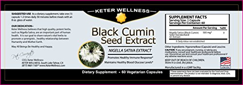 -. Binding : Health and Beauty -. Brand : Keter Wellness -. EAN : 0714833887300 -. Feature : Black Cumin Seed Promotes Healthy Immune Response / Pure Black Cumin Seed Extract - No Fillers, No Additives / Black Seed Extract (Nigella Sativa) Supports Healthy Blood Glucose Levels / Keter Wellness is a trusted name for Ayurvedic Herbs such as Black Cumin Seed / Black Cumin Seed Extract Modulates Regulators of Inflammation -. Label : Keter Wellness -. Manufacturer : Keter Wellness -. MPN : Black Cumin -. PackageQuantity : 1 -. PartNumber : Black Cumin -. ProductGroup : Health and Beauty -. ProductTypeName : HEALTH_PERSONAL_CARE -. Publisher : Keter Wellness -. Studio : Keter Wellness -. Title : Black Seed Extract | Made in USA | Nigella Sativa Black Cumin Seed Extract | 60 Vegetarian Capsules -. UPC : 714833887300