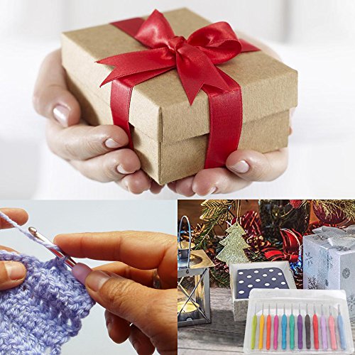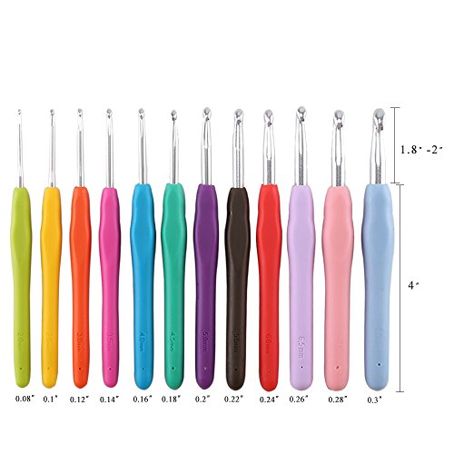 Ergonomic Crochet Hook ManYee 12 Sizes 2-8mm Aluminum Crochet Hook Set Extra Long Crochet Hooks Rubber Handle Thermoplastic Grip Non-slip Handle For Beginners Arthritic Yarns