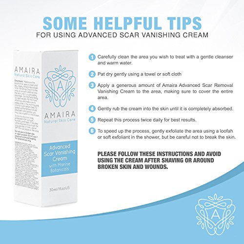 RATED THE BEST SCAR REMOVAL CREAM WITH NATURAL INGREDIENTS: Safe for all skin types and for sensitive skin intimate areas, Amaira's at-home scar treatment has been scientifically-proven to reduce scars, marks and skin blemishes within 6-8 weeks. Amaira offers a 45-day money back guarantee so you can try this advanced formula absolutely risk free