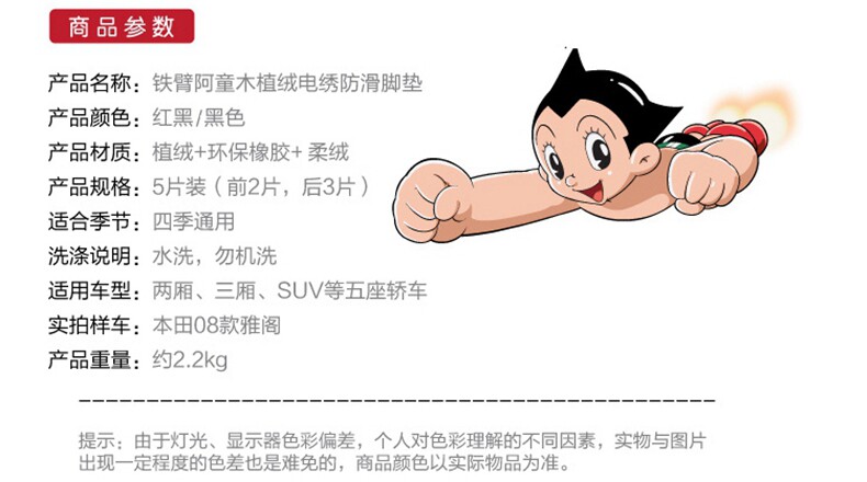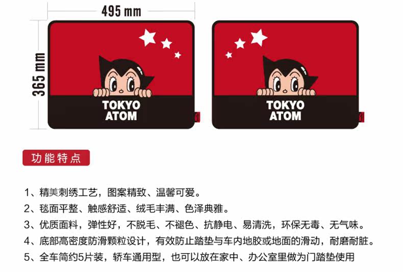 阿童木 汽车脚垫 卡通可爱 通用脚垫 植绒防滑耐磨 环保脚垫