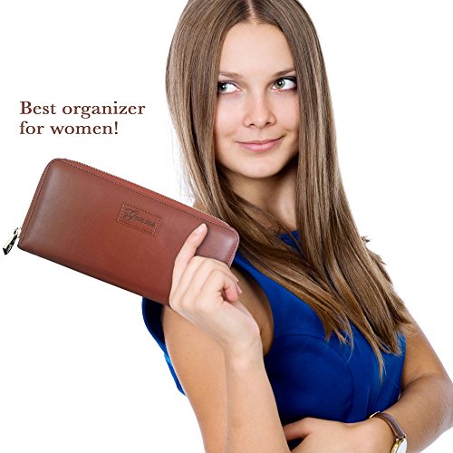 Title : BEST Wallet for Women, Genuine Handmade, Securely Stores 16 Cards, Coins, Phone, PU Leather, Zip Around