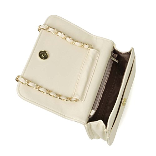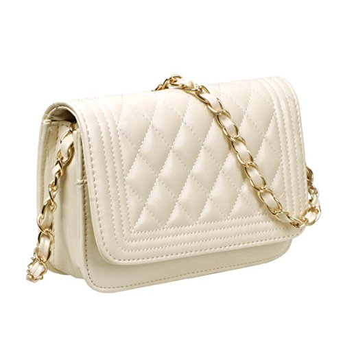 BMC Womens Cream PU Faux Leather Diamond Quilted Pattern Mini Handbag Shoulder Strap Clutch