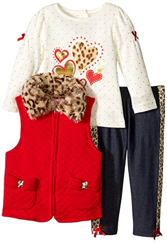 -. Title : Nannette Baby Girls' 3 Piece Vest Set with Leopard Faux Fur Collar