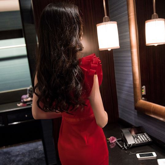 タイトめなラインのパーティードレスです。