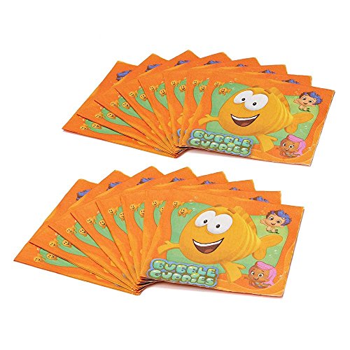-. Feature : 16 beverage napkins, 2 ply / Small napkins measure 12 7/8 in. X 12 7/8 in / Cute and colorful Bubble Guppies party napkins feature Mr. Grouper, Oona, Gil, molly, goby, Deema, Nonny, and bubble puppy / Pair with other American greetings party supplies for a bubble guppies themed party