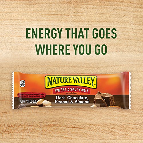 Nature Valley Sweet and Salty Dark Chocolate, Peanut and Almond Bars are a perfect balance of chewy granola and delicious real peanuts and almonds, bursting with dark chocolate and nuts, dipped in a peanut butter coating. Enjoy a granola bar that gives your body a burst of energy to help keep you pedaling or paddling and provides your taste buds with a wholesome, fulfilling treat.