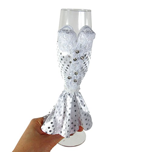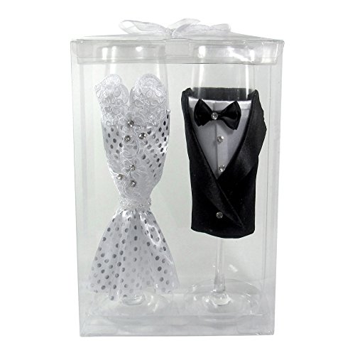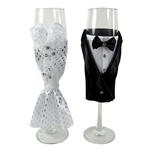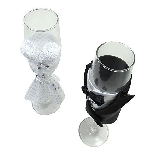 SET OF 2 CHAMPAGNE GLASSES – Accompanied by the groom tuxedo and brides dress as the champagne flutes design provides a love and happiness to any occasion.