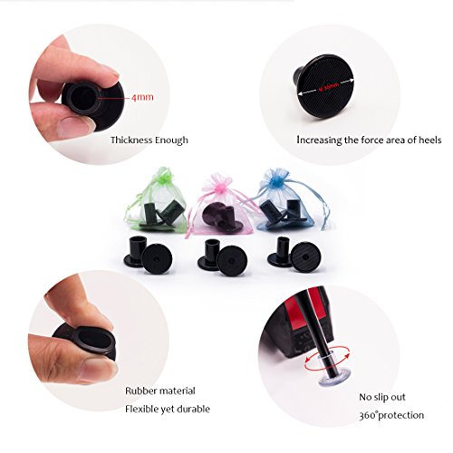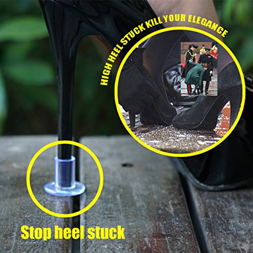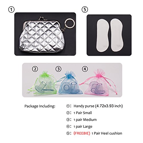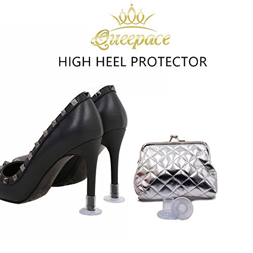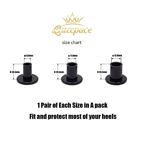 Product Description High stiletto heel is essential for Fashion girls, ladies. Plus this popular shoe take you many problems. High heel sinking into grass, sands; stuck in road slip, these troubles even make your in dangerous! Queepace high heel stiletto shoe protectors, a little cover make a good solution of high heel defect. It's shoe Heel stopper of sinking into grass; It's high heel shoe heel tips cover prevent shoe dowels wore-out; These high heel guards easy to use and a heel caps to save heels from stuck, skidding; Queepace Heel protectors is really essential for high heel shoes savers. It's have clean/clear and black color, and 3 kinds of sizes providing most kinds of your heels. Each pack have 3 pairs of high heel protectors matching a Fashion purse(3.94 X 4.72 inch) to organizing. Convenient to through it in your handbag, it's also with a keychain, so you no need to find them anywhere as it's small things. A FREEBIE back of heel protectors ,heel cushion supply to saver your back heel hurt by shoes. Every girl and ladies needs this! Please do not hesitate, BUY NOW. Package Including: 1:Handy purse 2:1 Pair Small 3:1 pair Medium 4:1 pair Large 0