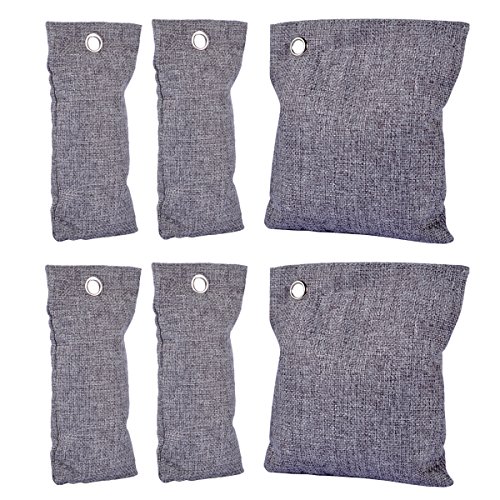 - CONVENIENT SIZE - Bamboo charcoal odor eliminator bags come in 2x200g and 4x50g size bags. The 200g bags are ideal for tossing into your laundry or gym bag, and the 50g bags are shaped to fit perfectly into any small areas and shoes.