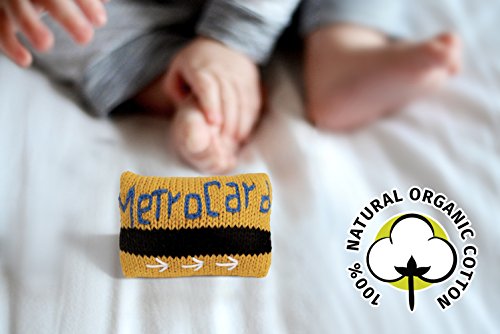 This baby rattle is one of Estella's most popular first baby toys. Inspired by the iconic New York Metro Card, these baby rattles have the distinct bold yellow hue and contrasting black details of the subway card. With this sharp contrast and an attention grabbing rattle sound, babies are infatuated with this soft toy. This one of a kind infant toy is a popular baby gift and has been a big hit at countless baby showers. Most importantly, babies love it. The metro card rattle is part of Estella's collection of exclusive baby rattles that cater to various interests, others include: a purse rattle for the budding fashionista, a baseball rattle for the next Major league phenom, a taxi rattle for city baby, a milk and cookie rattle, school bus, racing car, beach ball and more. Hand-made with soft Peruvian cotton by local artisans for New York based children's boutique designer Estella, these unique baby gifts are the life of any baby shower.Feature