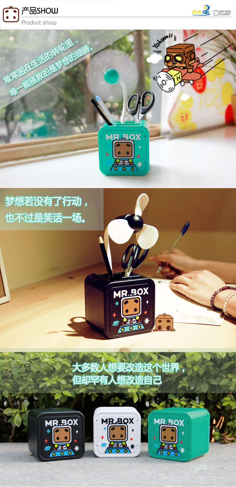张小盒迷你小风扇 卡通可爱USB电风扇 学生静音小电扇办公室卧室