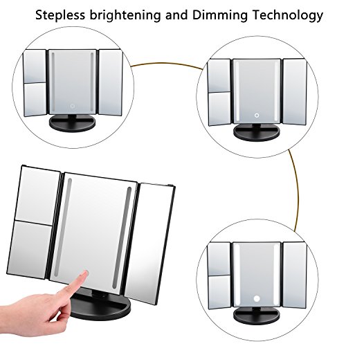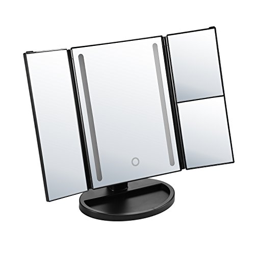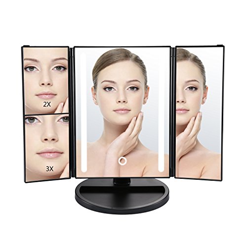 Makeup Mirror, Tri-fold Vanity Mirror with Light, Cosmetic Mirror with 3x/2x/1x Magnification, Sensor Touch Control, 180 Degree Rotation, Battery and...