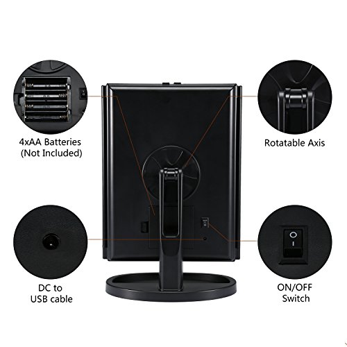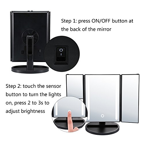 - ❀Adjustable LED Light: With 24 LED Light, controlled by touch sensor switch, not only allow you to do your make-up in poorly light condition, but also can choose different brightness according to your environment (“How to Use” is listed below)