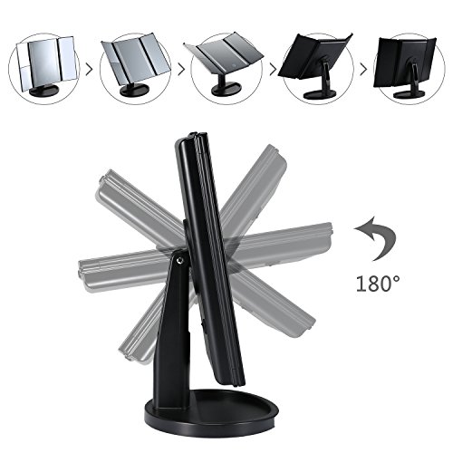 - ❀Tri-Fold Mirror: 3 panels mirror provide you a wide angle view, allows you to see yourself from multiple angles. It can be easily folded to keep away from the dust when you don’t use, which is also convenient to storage during travel (A Travel Makeup Mirror)