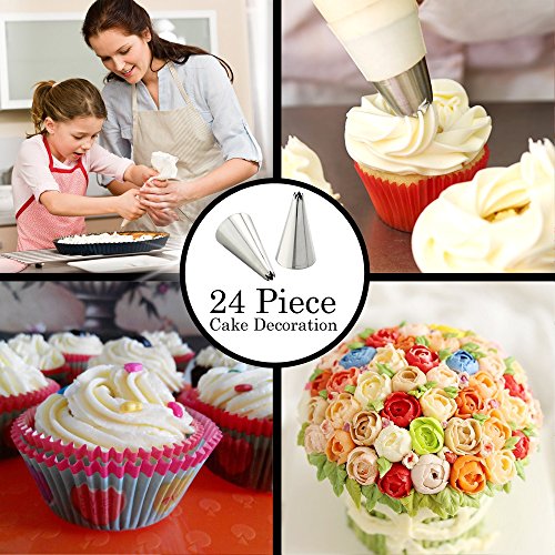 24 Piece Cake Decoration Icing Tips Set, Jree Ash Professional Stainless Steel Icing Tip Set ,Cake Decorating Tips Kits,[Fits Beginners] Cakes Cupcakes Cookies Pastry