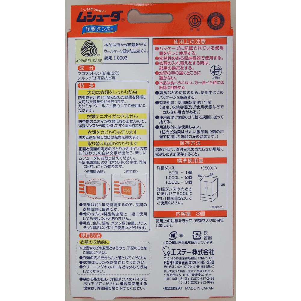 Insecticidal effect lasted 1 year, ideal for long-term clothing storage