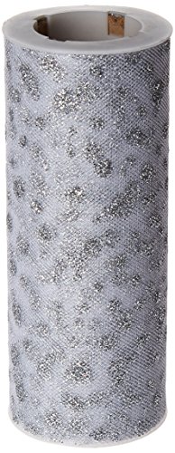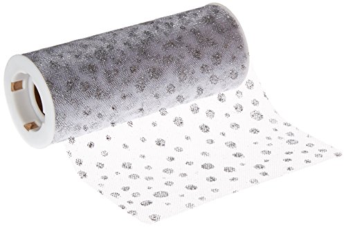 Tulle Glitter Dots 6" Wide 10 Yards Buy-The-Spool-White W/Silver