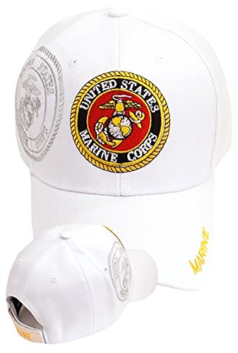 Studio : Buy Caps and Hats Publisher : Buy Caps and Hats Binding : Misc. Product Description Marine Corp Baseball Cap, white logo hat. Adjustable strap to fit most men and some women. Marines ball cap. Embroidered lettering and image. Adjustable velcro strap. 0