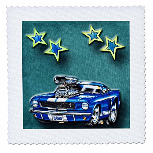 3dRose qs_128830_2 Blown Mustang Vintage Race Car with Stars for The Classic Car Lover Quilt Square, 6 by 6-Inch