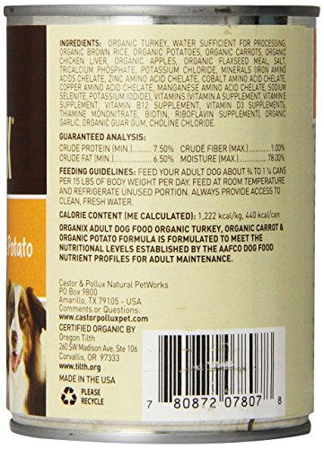 Castor & Pollux Organix Turkey, Carrot and Potato Adult Dog Food, 12.7 Ounce Cans (Pack of 12)