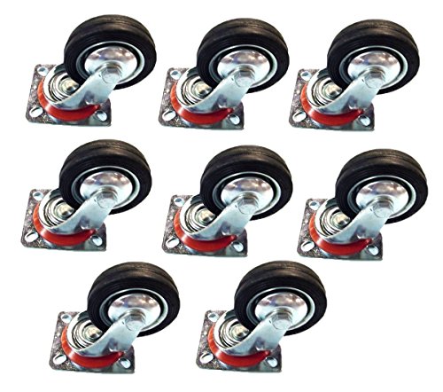 Set of 8 Heavy Duty Black Duck Brand 3" Swivel Caster Wheels Rubber Base with Top Plate & Bearing