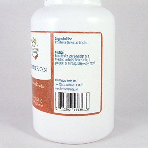 Studio : Five Flavors Herbs Publisher : Five Flavors Herbs Binding : Health and Beauty Product Description A 100-gram bottle of Agarikon Mushroom powder (3.5 ounces). This polypore mushroom has many common names, such as Quinine Conk, White Agaric, Agarick, Purging Agaric, and Larch Agaric. The botanical name is Fomitopsis Officinalis. The Chinese Pin Yin name is Ku Bai Ti. This mushroom powder is made from activated mycelium. (Mycelium is the main part of the mushroom and looks like white thready roots. The fruiting body is the fleshy cap and stem, or fan shaped part.) Other ingredients: myceliated brown rice. Brown rice is the growing medium, rather than sawdust or manure. The rice is consumed by the mycelia. It is not a filler. This is full disclosure regarding the ingredients. These mushrooms are grown in USA. Over 2,000 years ago, a Greek physician, Dioscorides, used this polypore as a curative. Containing Agaric Acid, agarikon has been used over the centuries in numerous preparations. This mushroom has been the subject of many current clinical trials and medical testing. Consult a herbalist to see how this mushroom may benefit you. 0